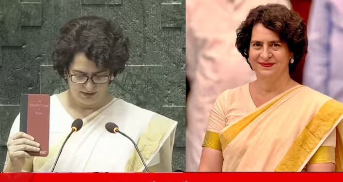 কেরলের ওয়েনাডের মানুষের হয়ে সংসদে প্রতিনিধিত্ব করবেন প্রিয়ঙ্কা, তার সঙ্গে সাযুজ্য রেখে আজ কেরলের বিখ্যাত কসাবু শাড়ি পরেই সংসদে যান তিনি। সোনালী পাড়ের সাদা কসাবু শাড়ি ছিল পরনে, হাতে ছিল সংবিধানের প্রতিলিপি, যা ইদানীং কালে প্রত্যেক সমাবেশে রাহুলের হাতে থাকে। সেই সংবিধানের প্রতিলিপি হাতে নিয়েই সাংসদ হিসেবে শপথ গ্রহণ করেন প্রিয়ঙ্কা। (Priyanka Gandhi Takes Oath)