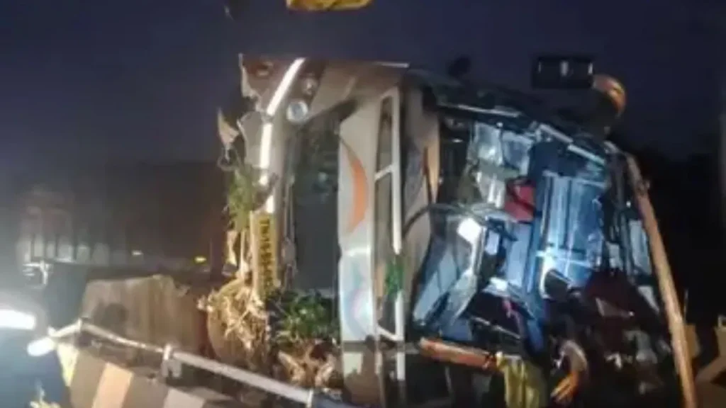 அப்போது, திடீரென கட்டுப்பாட்டை இழந்த ஆம்னி பேருந்து, சாலையின் நடுவே உள்ள தடுப்புச் சுவரில் பயங்கரமாக மோதியது. இந்த விபத்தில் ஆம்னி பேருந்தில் பயணித்த 40க்கும் மேற்பட்டோருக்கு பலத்த காயம் ஏற்பட்டுள்ளது. இதுகுறித்து தகவல் அறிந்து சம்பவ இடத்திற்கு போலீசார் விரைந்தனர். மேலும், சம்பவ இடத்திற்கு ஆம்புலன்ஸ்களும் விரைந்தனர்.